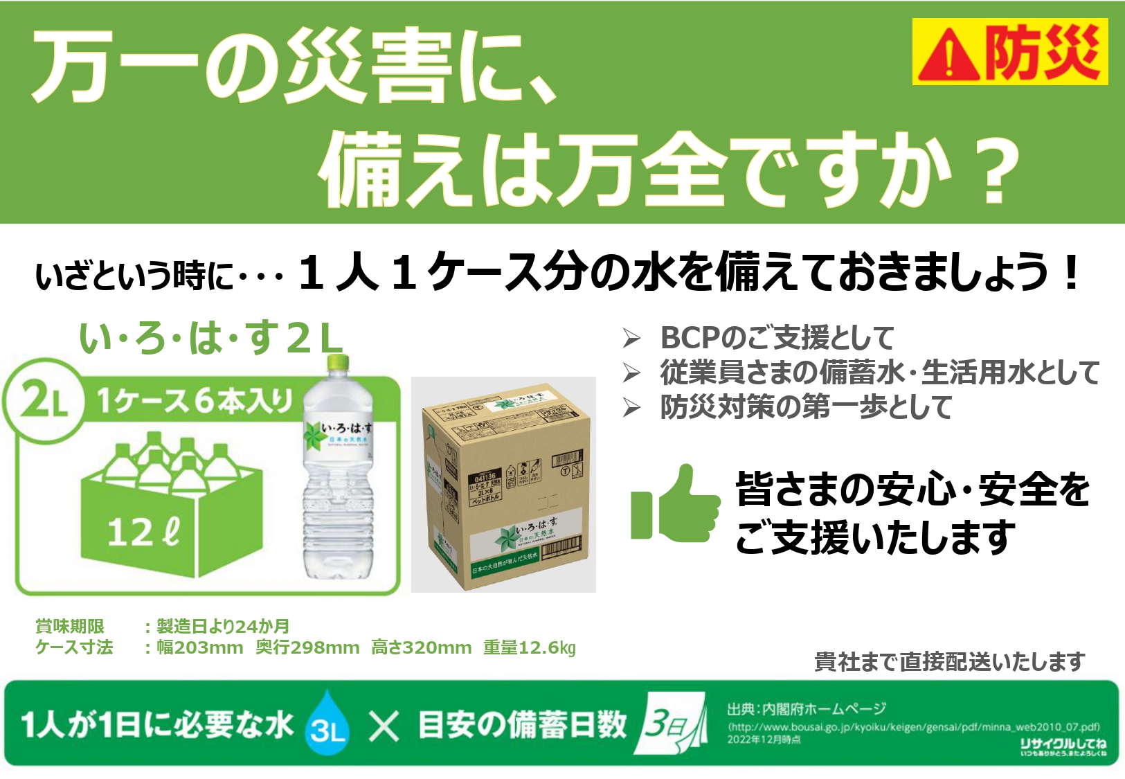 その他お知らせこの度、北陸コカ・コーラボトリング株式会社様のご厚意により、『備蓄水支援プログラム』が実施されます。